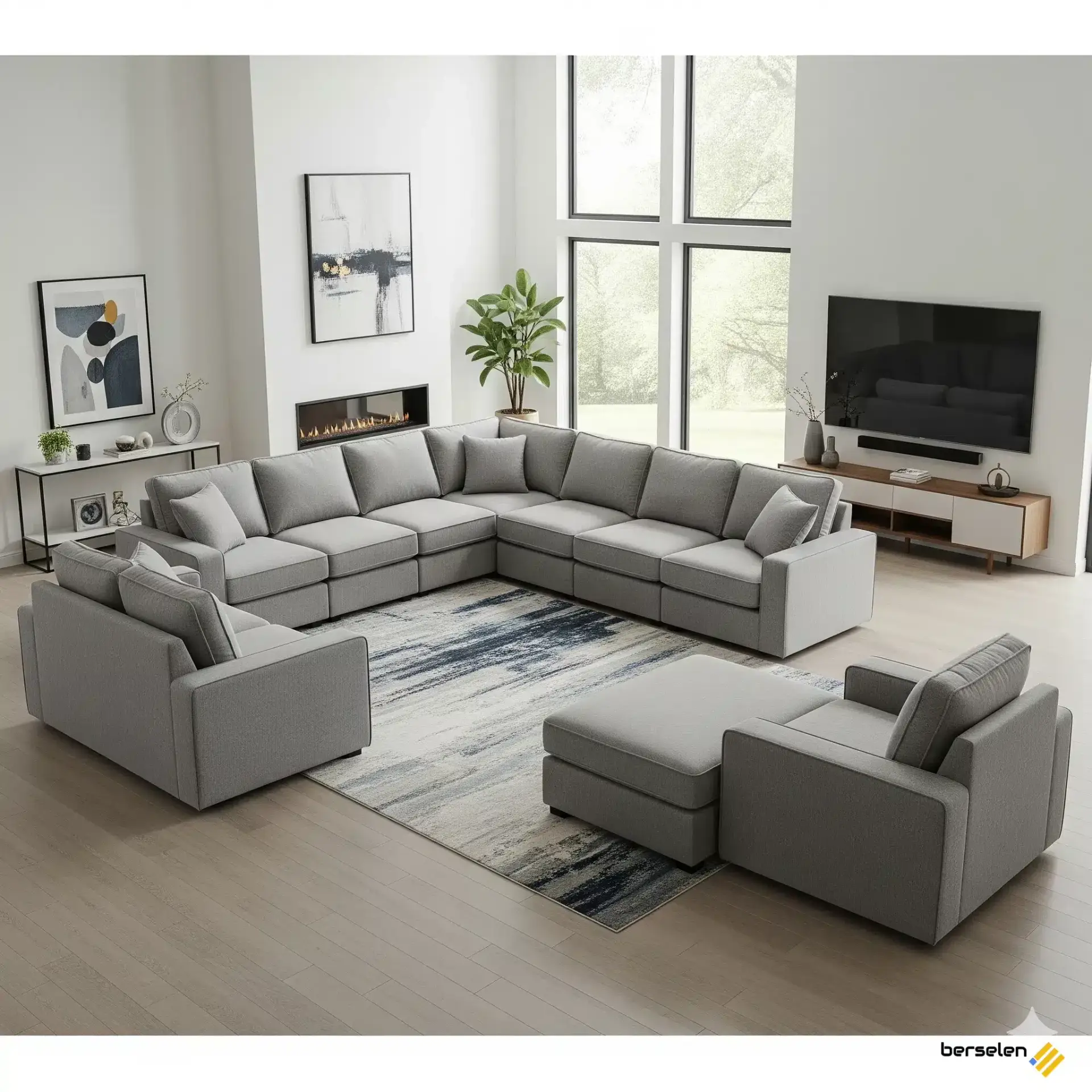دوست داری مبلت هم راحت باشه، هم شیک؟ مبل راحتی ۹ نفره ما تو برسلن اینجوری طراحی شده: