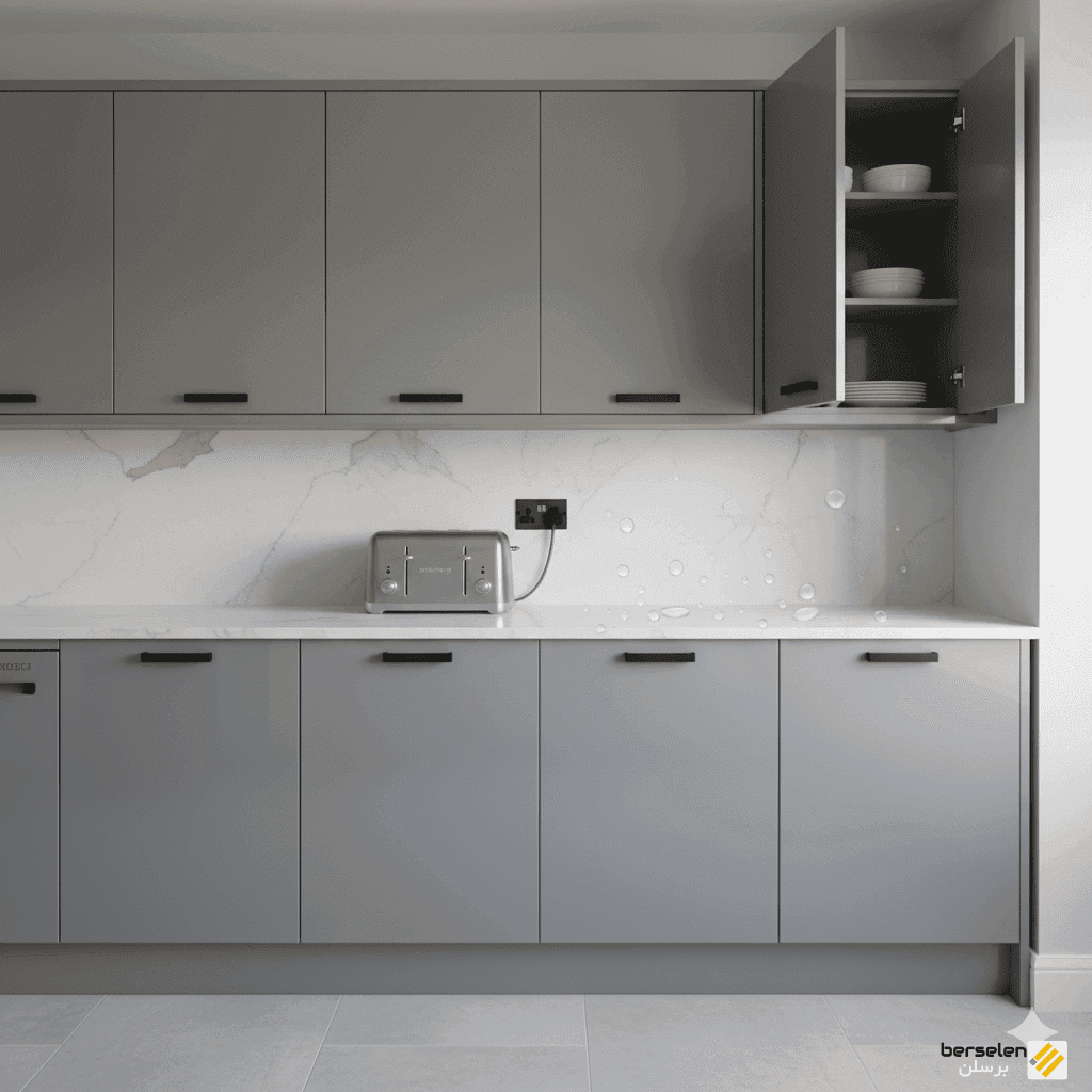 خود ورق هایگلاس سطحی مقاوم دارد، اما مهمتر از آن کیفیت مغزی MDF و لبهکاری است. در پروژههای برسلن برای نواحی مرطوب از MDF مقاوم در برابر رطوبت و لبهپوشهای مناسب استفاده میکنیم تا دوام کابینت تضمین شود.