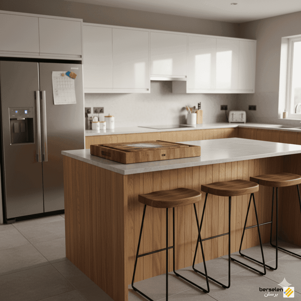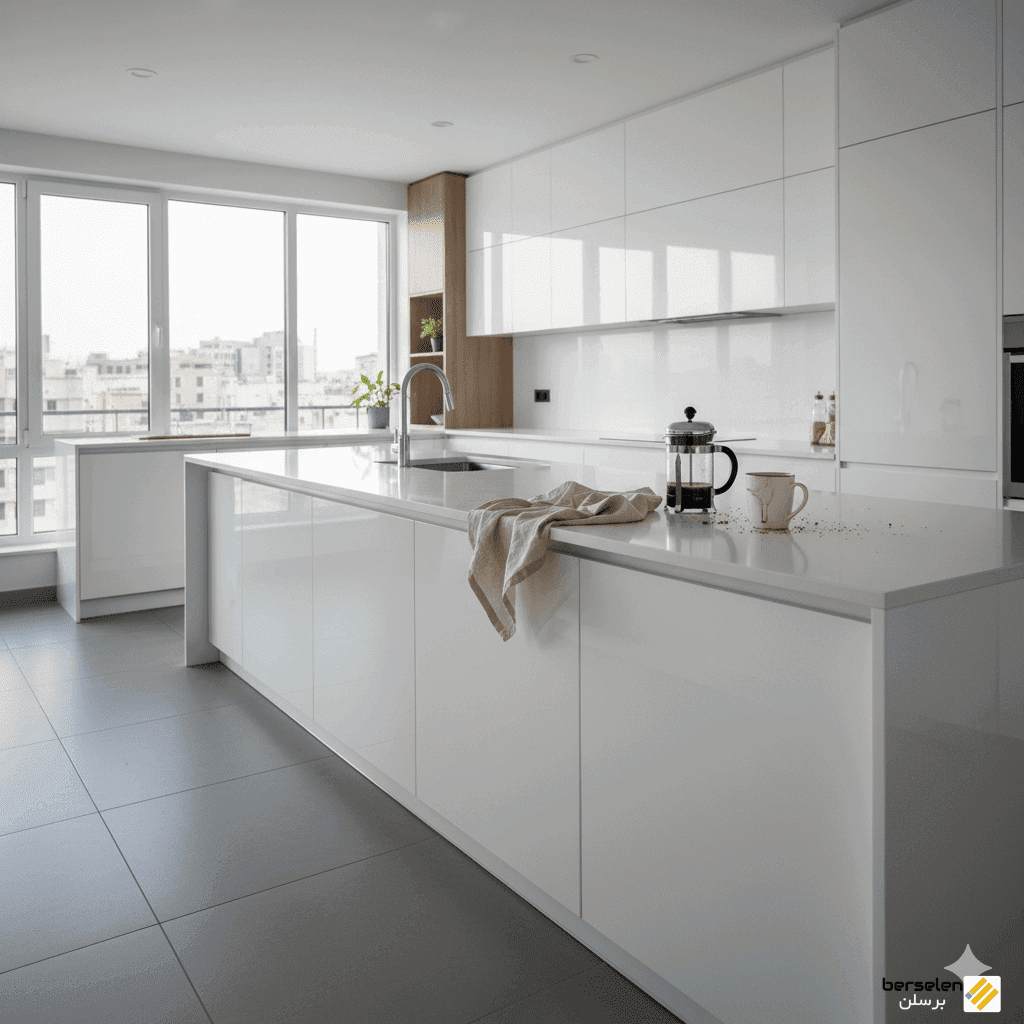 ما در برسلن، با استفاده از بهترین **ورقهای MDF با روکش هایگلاس ترک و ایرانی**، آشپزخانهای لوکس و چشمنواز برای شما طراحی میکنیم که دقیقاً با اصول **طراحی داخلی مدرن** هماهنگ است. برای شروع، کافیست برای **دریافت مشاوره رایگان** با ما تماس بگیرید.